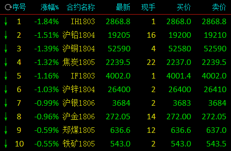 截至午间收盘,跌幅方面,沪铅跌1.51%,沪铜跌1.39%,焦炭跌1.32%,沪锌跌1.03%。涨幅方面,锰硅涨1.77%,橡胶涨1.32%,苹果涨1.17%,PVC涨1.06%,菜粕涨1.05%,豆粕涨1.04%。